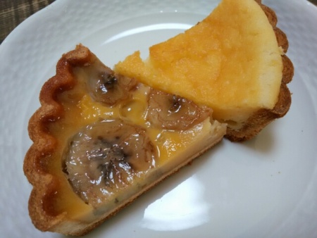 上はお菓子作りがお上手な方のタルト2種(チーズとバナナ)
