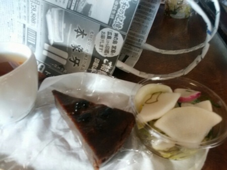 おやつには早いけど柔らかいうちにとヨモギ餅をいただきましたが、餡こは甘味控えめで餅はしっかり。