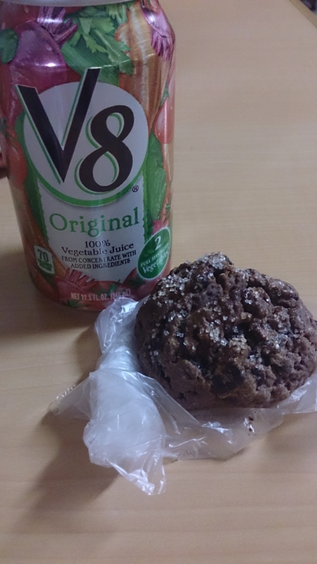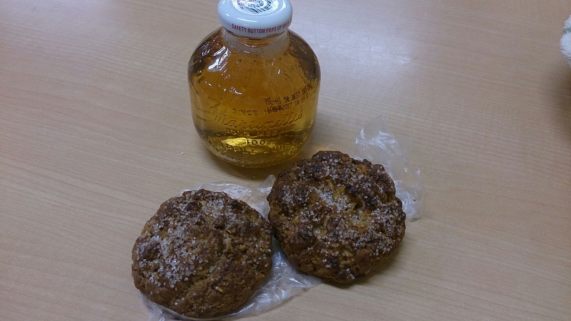 チョコチップキャラメルと紅茶のスコーンとリンゴジュース。