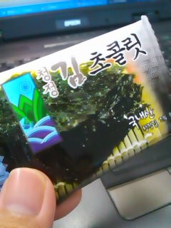 韓国海苔の…チョコレート。あと唐辛子のチョコレートもある。唐辛子の方は昔食べた事あるけど海苔は初だ。どんな味なんだろう。ドキドキ。