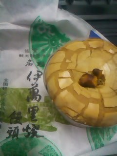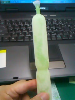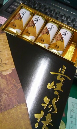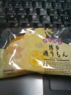 机の上に置いてあった会社の人のお土産。「あきと」って書いてある?[あ]なのか[わ]なのか分からん。あきとだったらいいなー。