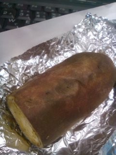 焼き芋。…今熱々のを貰ったんだが、誰か会社で焼いたのか?(^_^;)熱処理場でか?うちの会社ならあり得るぞ!あー、でも温度高すぎるかな。まあいいや、いただきまーす!