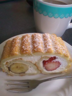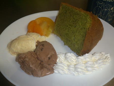 友達のママン手作りのシフォンケーキでっす!アイスや生クリームをトッピング。ケーキふわふわでウマー。