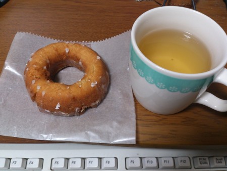 いっぱいドーナツもらった!どれにしようかな。オレンジドーナツがいいかな?しょうがドーナツも捨てがたい。はちみつもいいなあ豆乳やチョコもある(*´Д`*)迷うわあ。