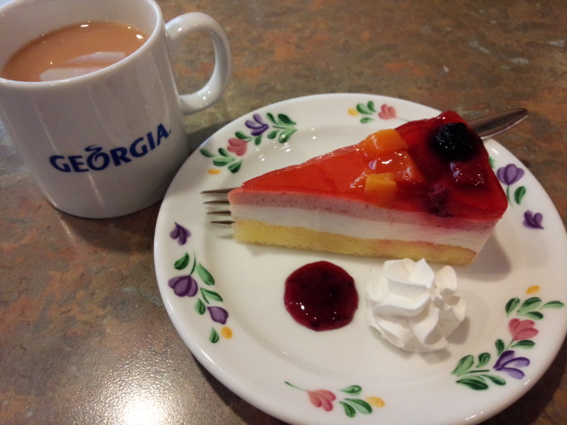 仕事終わりに喫茶にてチーズケーキとミルクティー