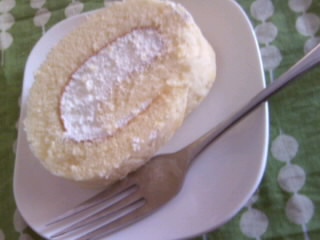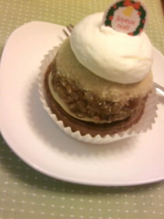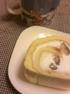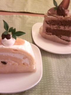 奥は栗とチョコのケーキ、手前はカボチャのロールケーキ。