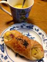 カスタードクリームとチョコレートソースのワッフルをいただきました。