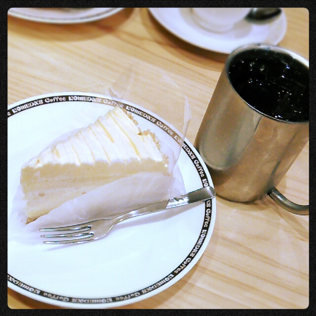 グランフロントのオープンカフェでレモンシフォンケーキをいただきました。