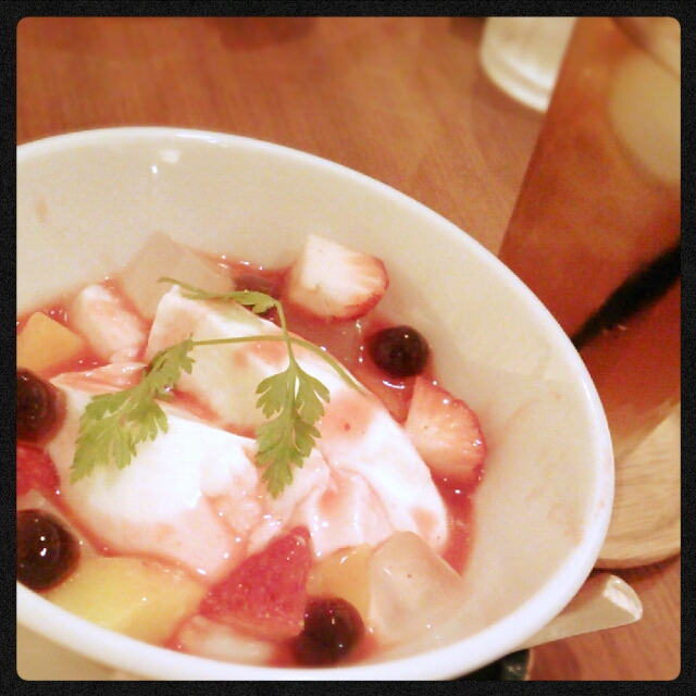 上に乗っているのはシブーストで、周りはヨーグルトソースがあっさりしていて美味しかったです"∩´︶`∩"