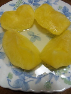 切って、ルクエに入れて、砂糖大さじ1、レモン汁少々。レンジで6分。