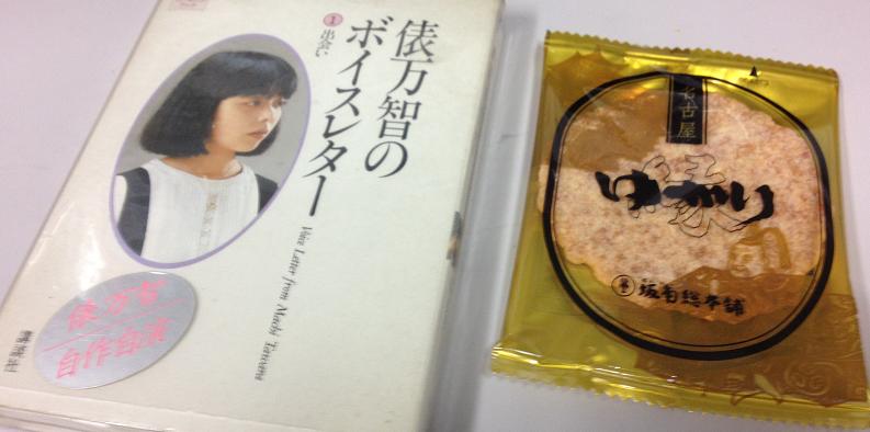 名古屋の「ゆかり」(右)と俵万智のボイスレターカセット(左)。カセットのA面はトーク「24歳の私」。