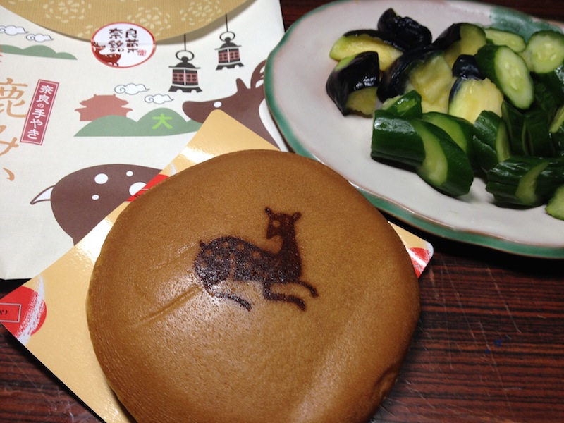 店内には和菓子もいくつかあったので三笠(つまり大きなどら焼きか)の鹿の絵が押されているものも衝動買いしました。いやあんカワイクって切れない!><