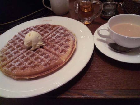 クロテッドクリームのワッフル&イングリッシュミルクティー。