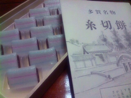 滋賀・お多賀さん名物 糸切餅。ビンクとブルーのラインがかわいいんだよねー。