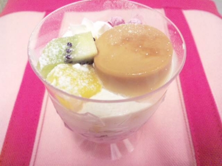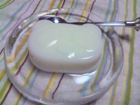 あんみつにのってる丸いピンクの麩は梅風味。これ美味しいよ。