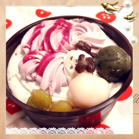 氷ふわふわ、金時豆もほくほく。美味しいよー。
