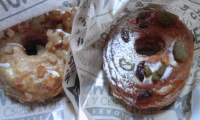 ミスドのMr.クロワッサンドーナツフルーツの「オレンジ&レモンホイップ」と「ミックスフルーツ&ヨーグルトホイップ」を半分ずっこ(*^_^*)