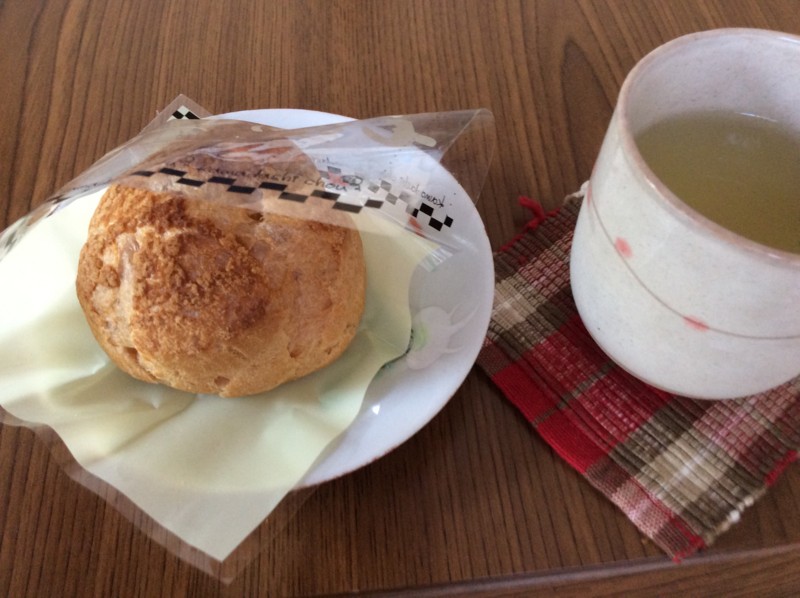 グーテでパンを買うついでに買ってしまったシュークリーム。飲物は冷茶。