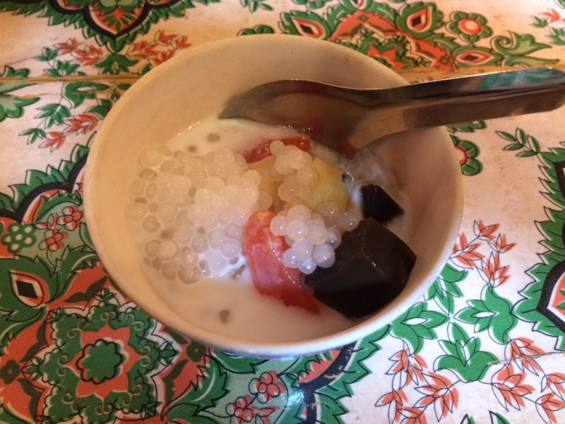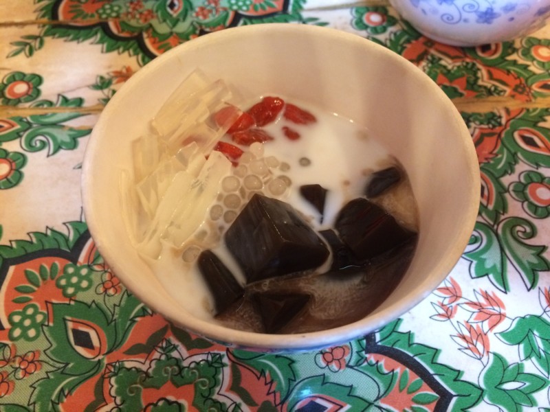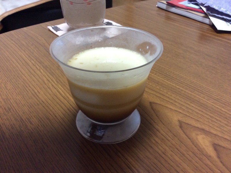 夕方、お向かいから「豆乳プリン作ったから夜のデザートにも」と持ってきてくれた。もらった時は上にシロップがかかっていたのに、置いている間にすっかり沈んでた。
