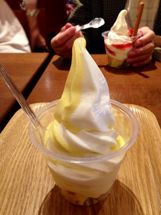 上の白いのはアイスだけどソフトクリームみたいな味がします♪( ´▽`)