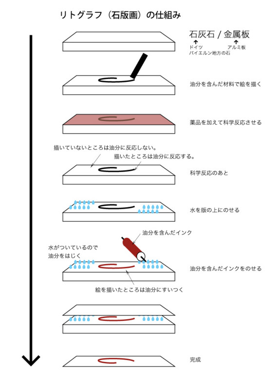 リトグラフ(石版画)の仕組み