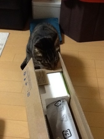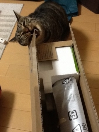 このあいだ注文したAirPlay対応コンパクトステレオが届いたので、箱を開けて使ってみたいのに、置いといても猫にイタズラされない場所というのが見つからない。