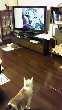 温水さんと猫の映画がやっていたので見ていたら、猫の鳴き声に反応したよ。