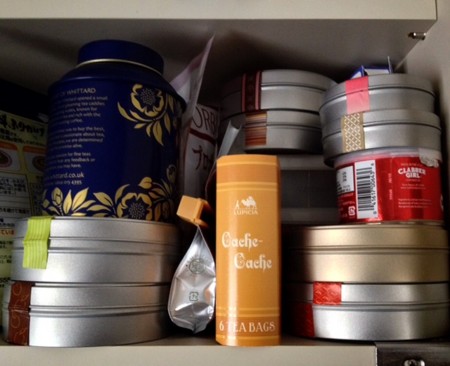 紅茶だけでこのありさま(BP挟まれとる。中国茶とハーブティ、麦茶などは別のとこにあります)。しばらくお茶は買わない。ほんとに買わない。バレンタイン用のチョコレートフレーバードもあるから買わないったら買わない。