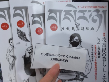 明日までの「チベット牧畜民の仕事展」@東京外語大府中キャンパスAA研に。チベットの文学と映画の雑誌セルニャを、最新号含め全号いただいてしまった! 早起きは三文の得とはこのことか。いや三文以上の得だけど。しかし、チベタンなぞなぞの答えはわからず。足の肉はお供えとして、あれのことか? とか悩んでいる。