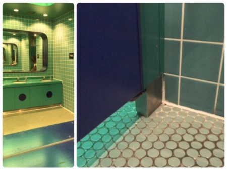 TOHOシネマズ川崎の女子トイレ、深い青とグリーンに、青磁色がかった緑のタイルで海の底みたいで、異様に眠気を誘うリラックス空間でした。