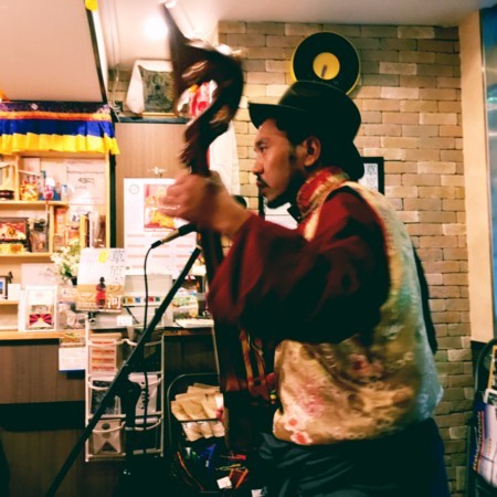 亡命チベット人のドキュメンタリー映画『ラモツォの亡命ノート』初上映会後の懇親会で在日チベット人アーティストのゲニェン・テンジンさんのライブをかぶりつきで。