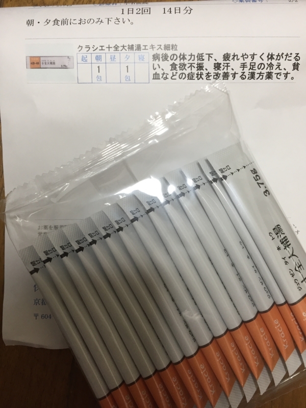 婦人科で、ここ2ヶ月ほどヘルペス繰り返してて不調な話をしたら、免疫力上げるために漢方を処方してくれはりました。