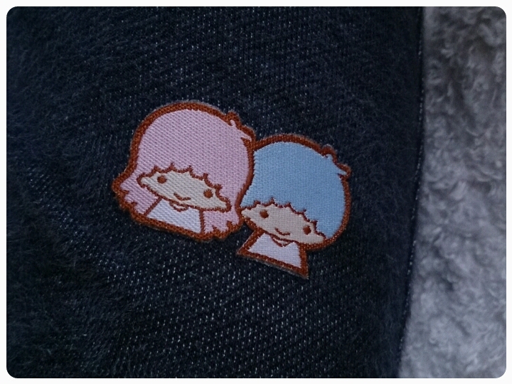 転んで穴が空いてしまった娘のレギンスに、サンリオでもらったアップリケをつけてみました。