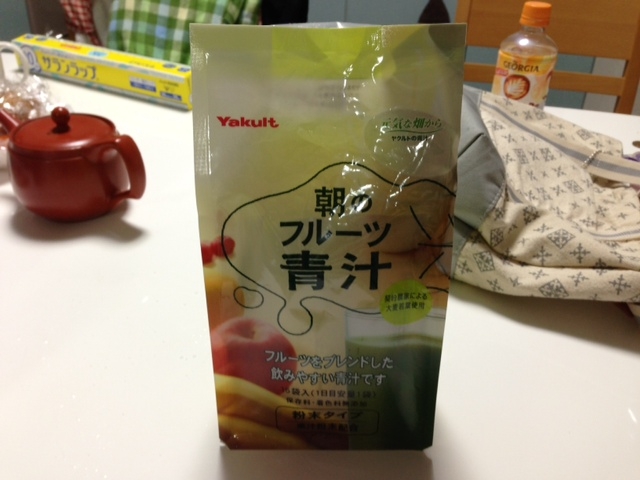 さっき雨の中ドラッグストアに行ってフルーツ青汁買ってきました。