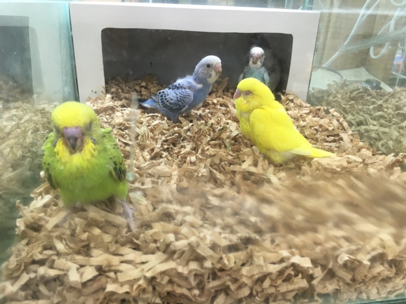 黄色い子は売約済、手前の緑っ子は人懐っこく、後ろの子達はビビリちゃん。