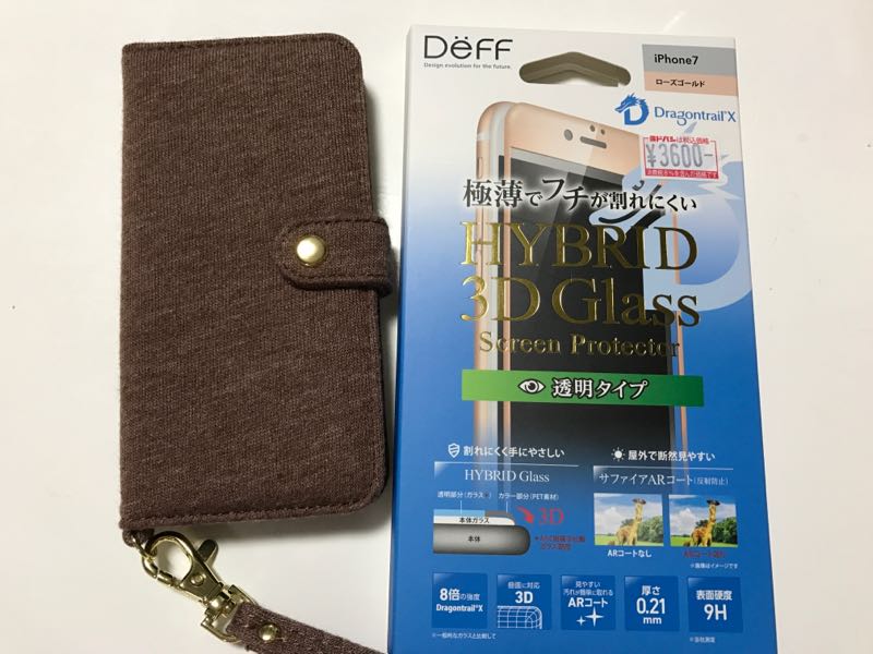 今回は防御力重視で、フカフカ素材のケース(ストラップ付き)とガラス製の保護シートをチョイスしてみました。