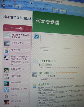 ハイクを開いたら 「これは英語のページです。翻訳しますか?」 って出た。 ※Google Chrome使用