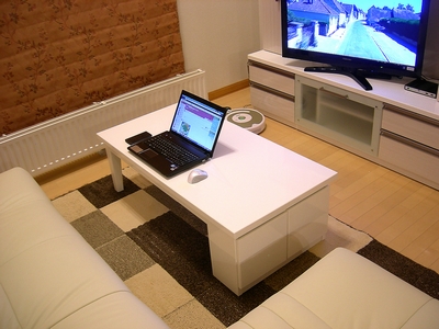 普段PCを置いて使っているリビングのテーブルがツヤツヤの光沢仕様になったので、