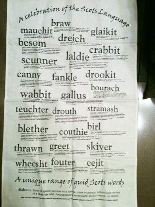 スコットランドの言葉、ゲール語の単語が書かれたタペストリー。