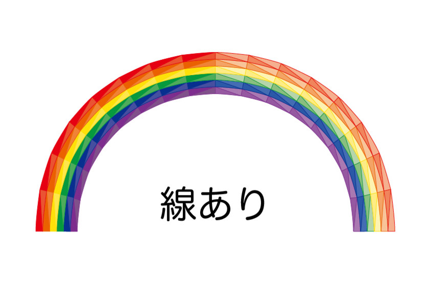 ・長方形→パスの段落設定で間隔0mm6分割→スウォッチの虹色6色セットから線のカラーを設定、塗りなし