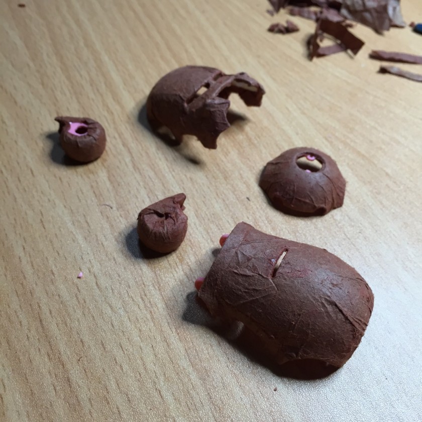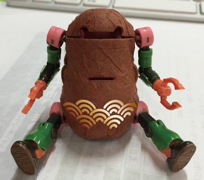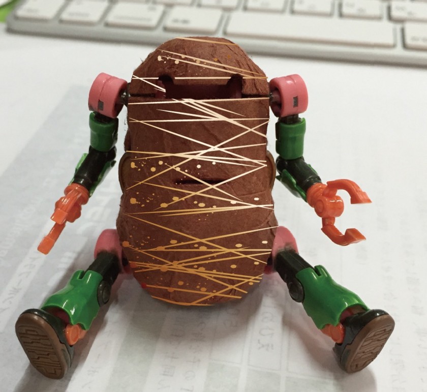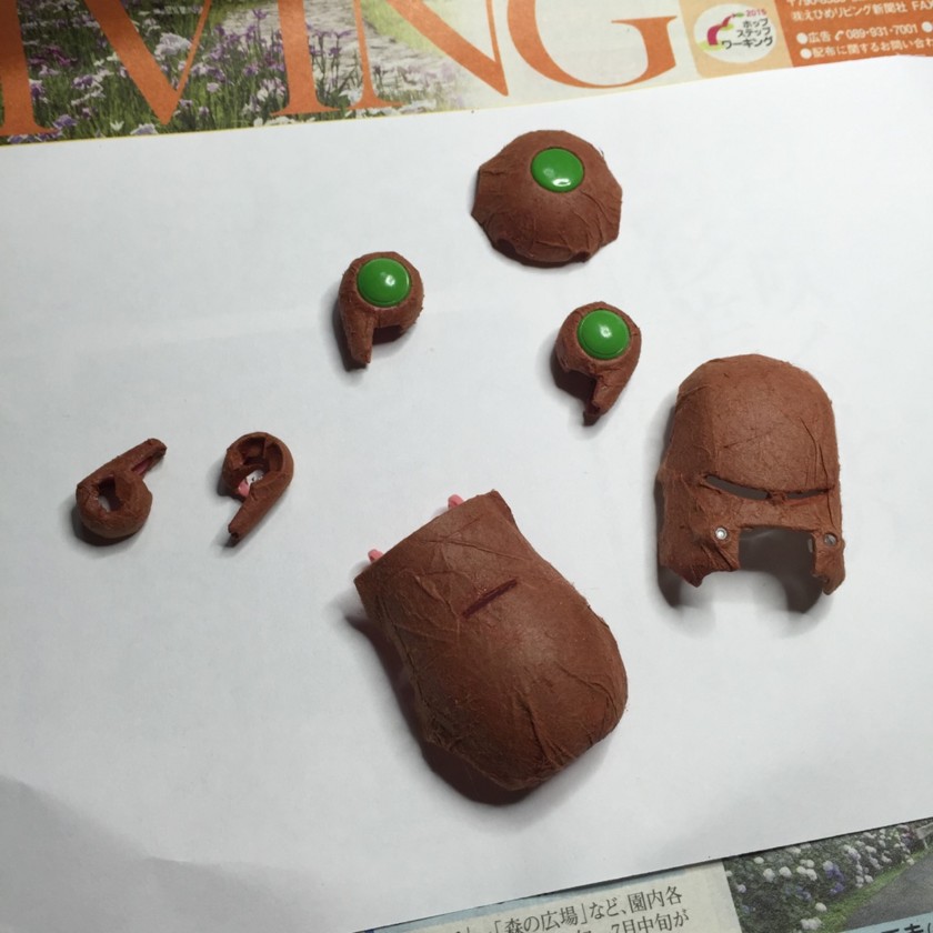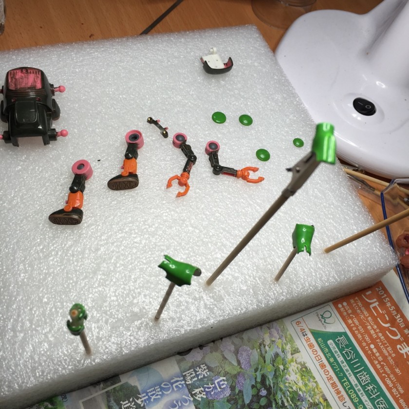 メタリック黒と黄緑を混ぜてももいろの成型色の上に直接塗ったら、ほんのり茶色混ぜたような色になった。