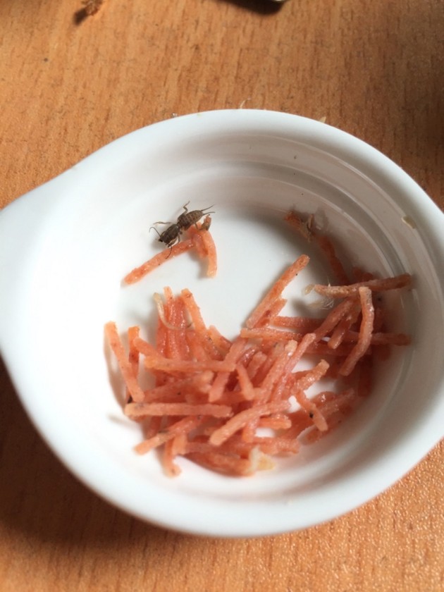 しばらくエサの減りが悪かったから、子供食ってるのかな、くらいに思っていたが、久しぶりにキャベツもりもりかじった痕跡。