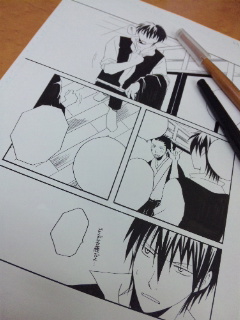 塗っても塗っても終わらないベタに泣きそうです。手も墨汁とインクで真っ黒です……明けない夜はないと信じて頑張るよ!。・゜・(つд∩)・゜・。