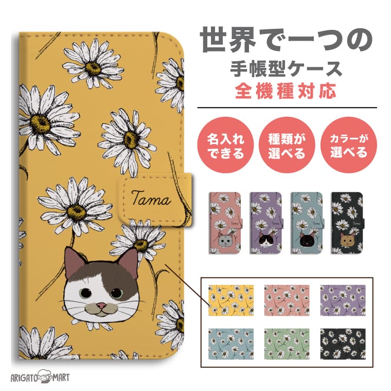 【好きな猫とカラー 名入れ】 スマホケース 手帳型…