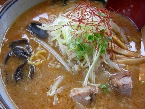 濃厚でコッテリとしたコクのあるスープが縮れ麺に絡んでとってもおいしい。