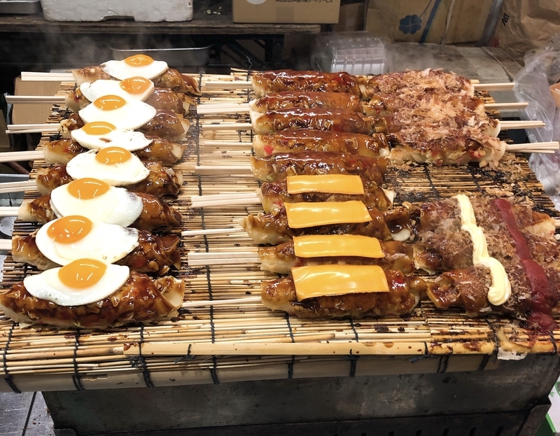 箸に巻いたお好み焼きっぽいのを売っている店が多かった
