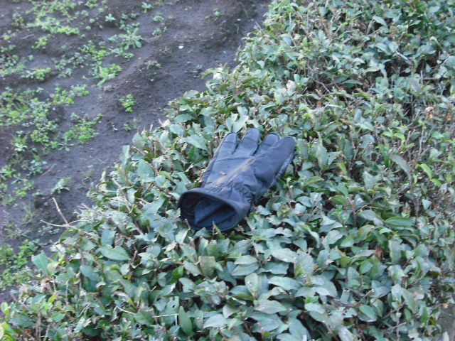 車を運転してるときに、植え込みに手袋があるのを見つけて、