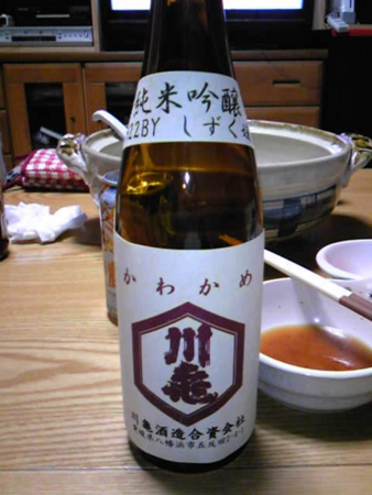 川亀の純米吟醸中汲み、しぼりたて無濾過生原酒をいただきます。