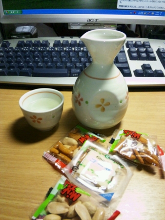 梅錦の「ずーっと好きでいてください」を燗でいただきます。