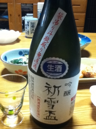 限定品の文字に釣られて購入した初雪盃 吟醸 袋吊り斗瓶取り無濾過生原酒。